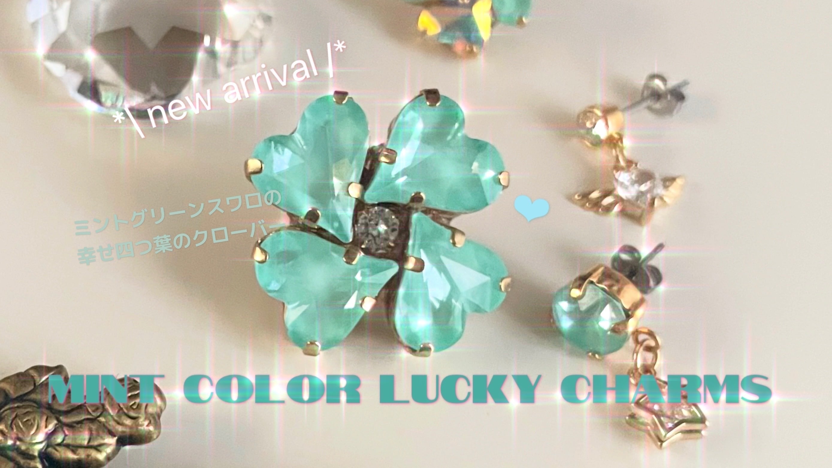 ミントカラーラッキーチャームピアス✧‧˚