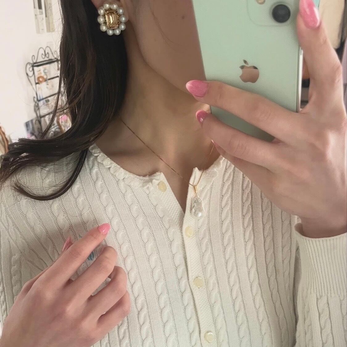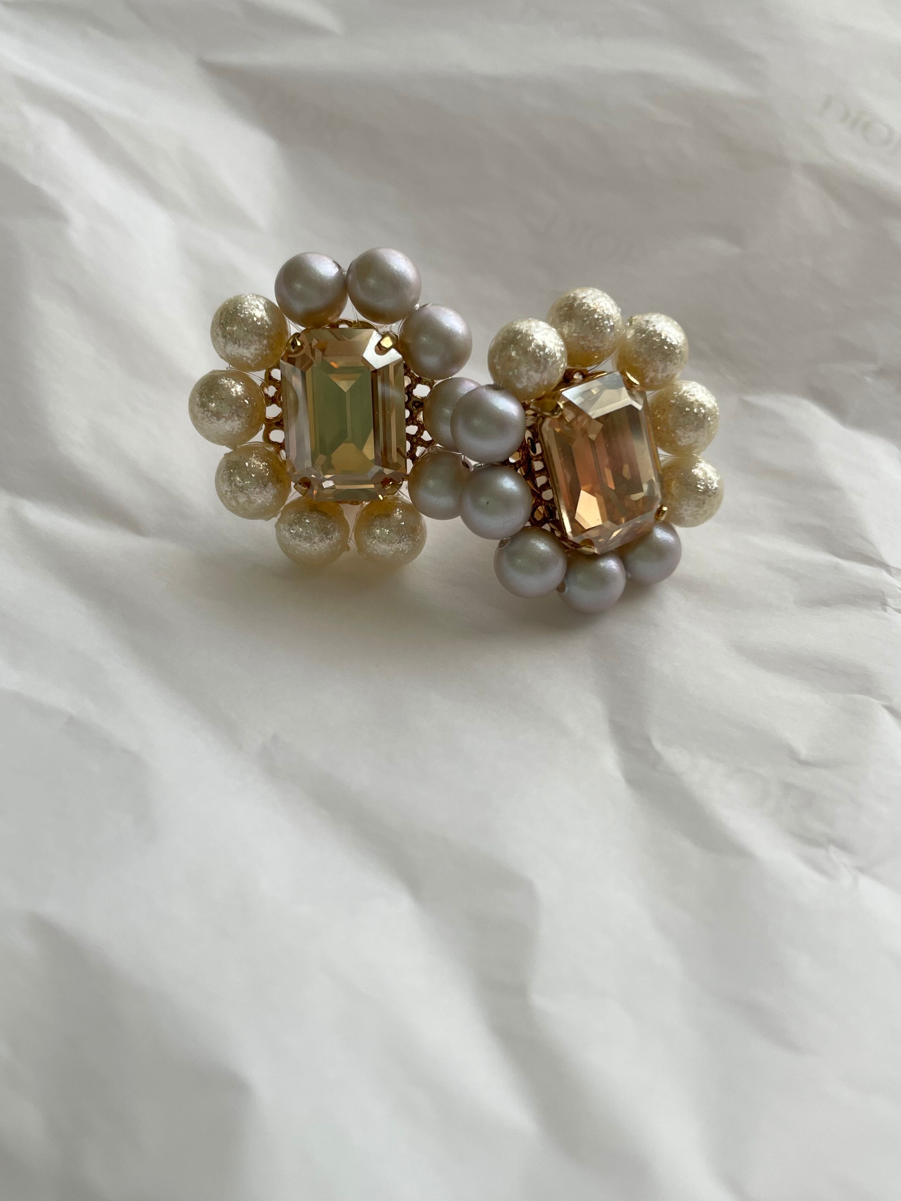 上品なグラデパールとスワロフスキーのピアス✧‧˚