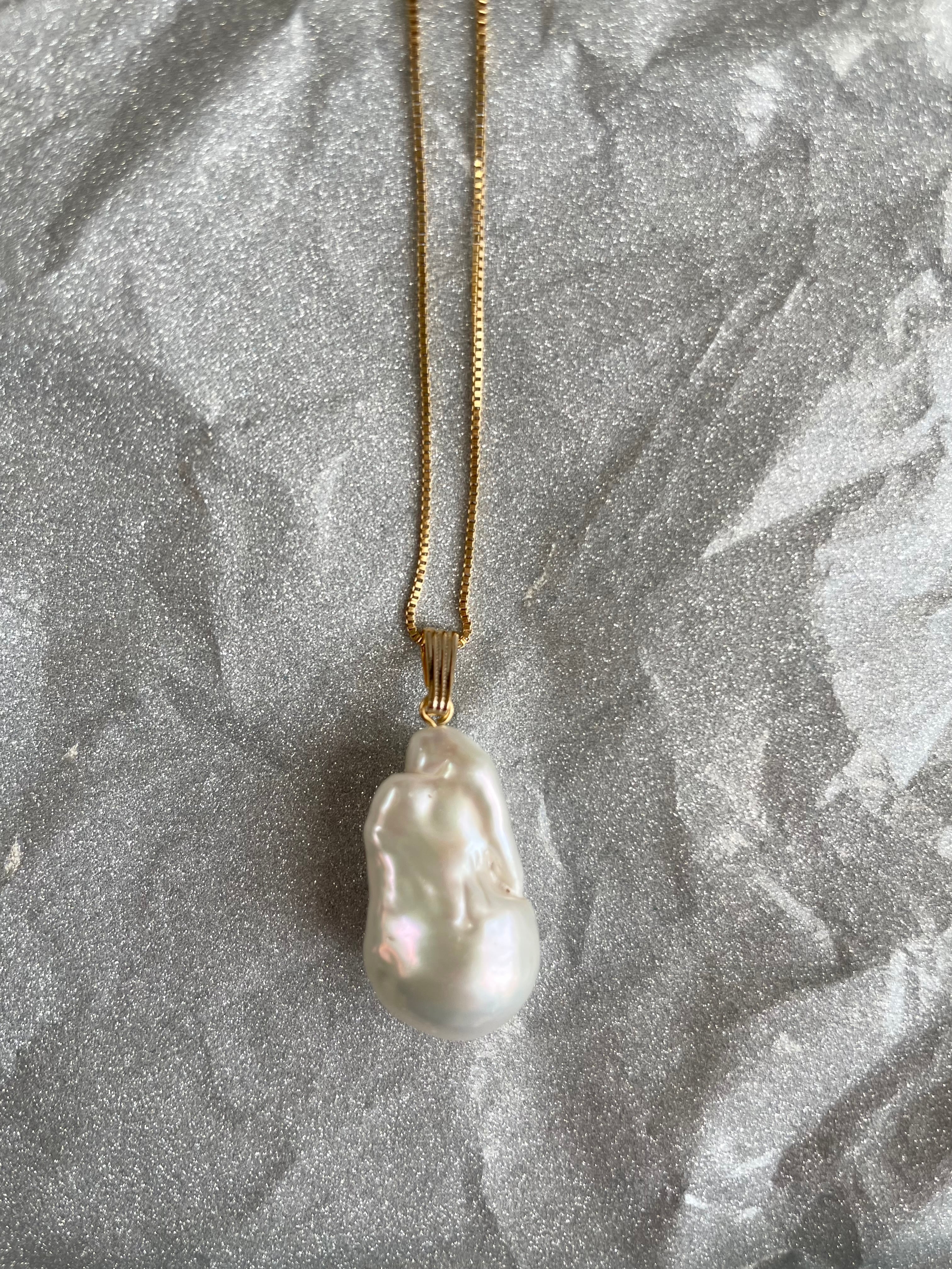 ペンダントトップにはひとつひとつ個性的なシェイプのドロップ型、この世にひとつだけの高品質の淡水パールを。ボリュームがあり一粒で存在感抜群です。光の当たり方により様々な表情を見せてくれます❤︎︎