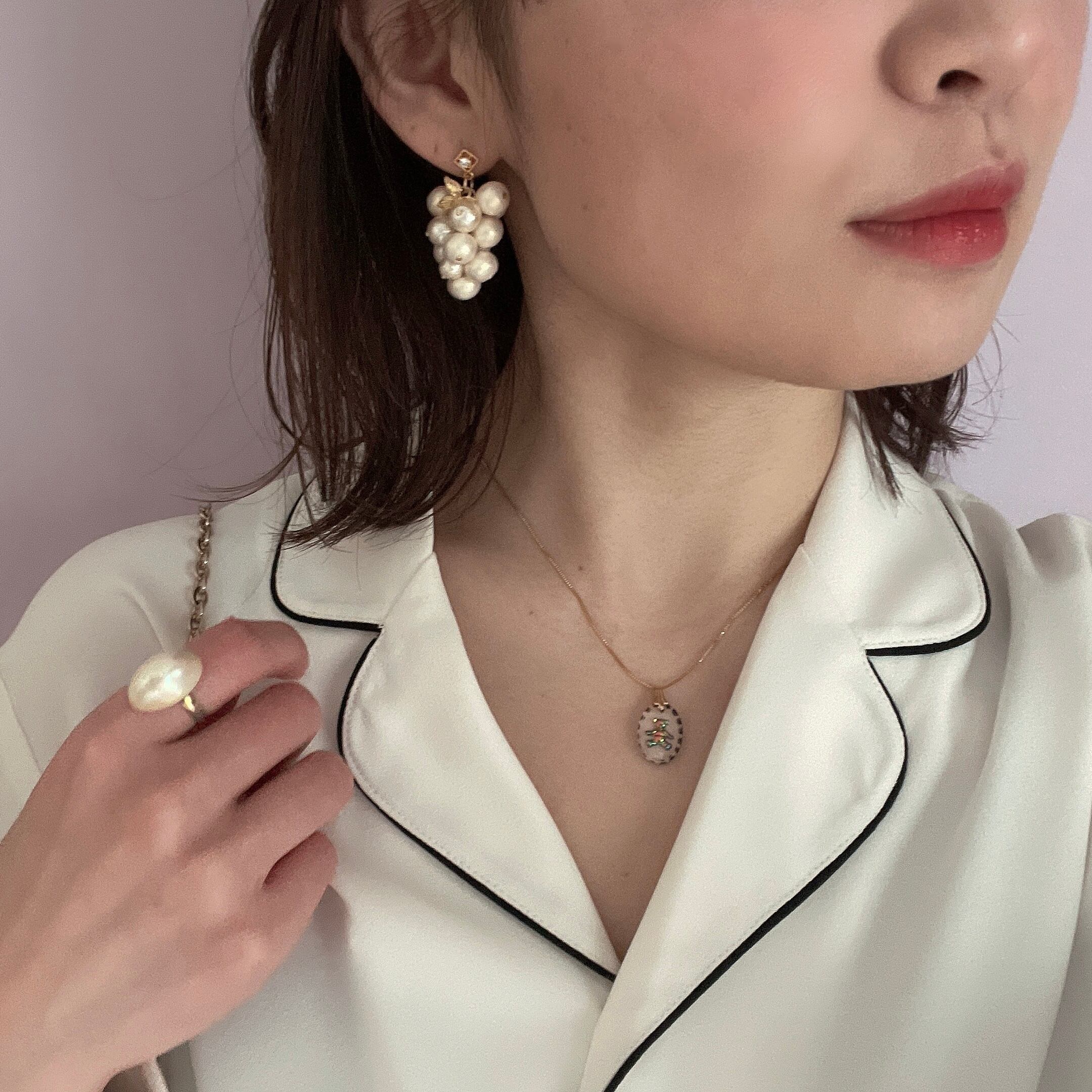クリーム色のコットンパールで作ったブドウみたいなjewelry✧*。゚
